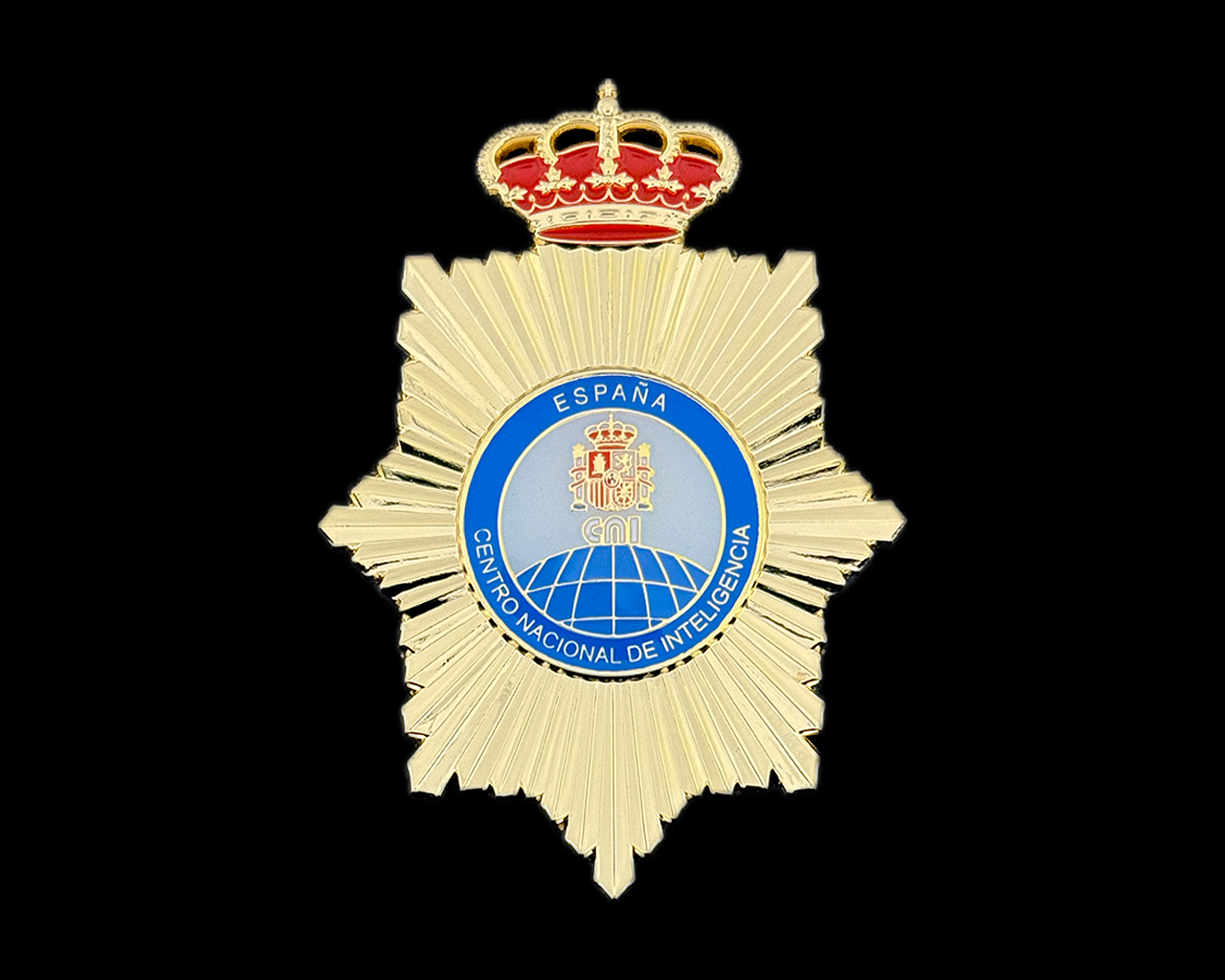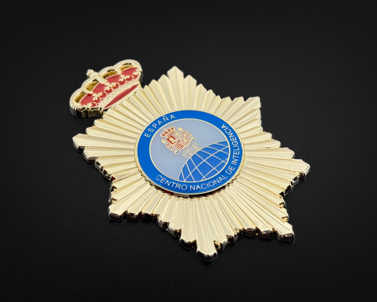 Réplica de la placa del CNI (Cuerpo Nacional de Inteligencia) de España. Pensada para llevar en cartera portaplacas. Fabricada en baño dorado y esmaltes bajo relieve con gota de epoxy transparente. Tamaño: 68 x 50 mm. Reverso liso con el nombre de nuestra empresa estampado en la zona inferior. Puede encontrar más productos relacionados pinchando aquí.